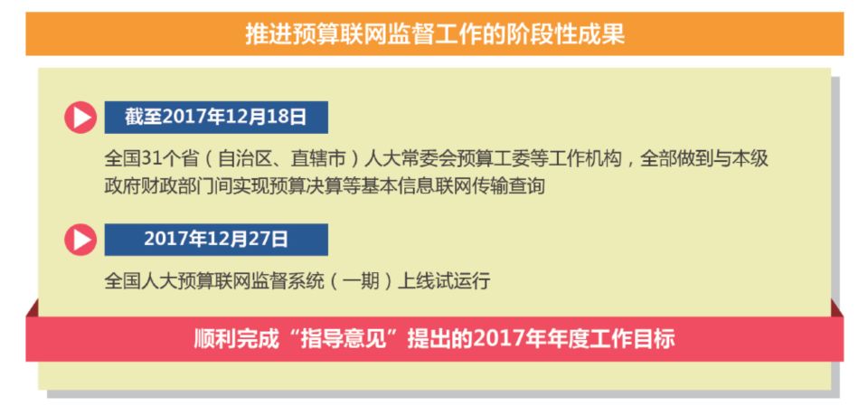此外,全國(guó)人大還著力推進(jìn)預(yù)算聯(lián)網(wǎng)監(jiān)督工作,更好地打造“陽光財(cái)政”。通過網(wǎng)絡(luò)傳輸報(bào)送、提供聯(lián)網(wǎng)查詢,實(shí)現(xiàn)預(yù)算審查監(jiān)督信息化和網(wǎng)絡(luò)化,提升預(yù)算審查監(jiān)督內(nèi)容的詳實(shí)性和時(shí)效性,增強(qiáng)預(yù)算審查監(jiān)督的針對(duì)性和有效性,推進(jìn)財(cái)政信息公開透明和預(yù)算行為規(guī)范有序。目前,推進(jìn)預(yù)算聯(lián)網(wǎng)監(jiān)督工作已經(jīng)取得階段性成果。