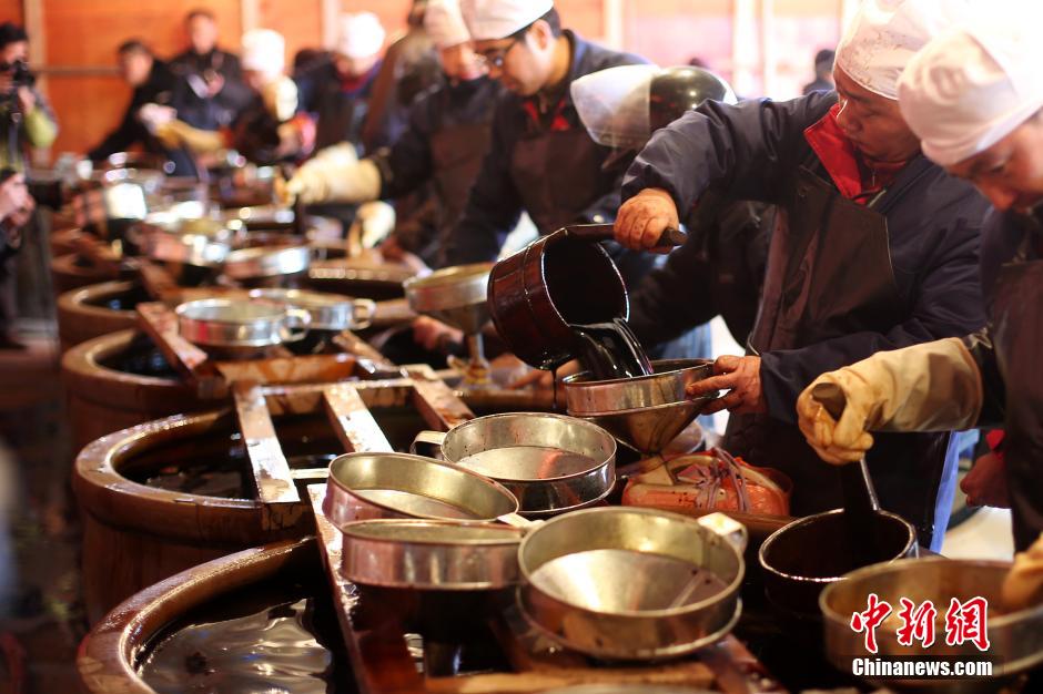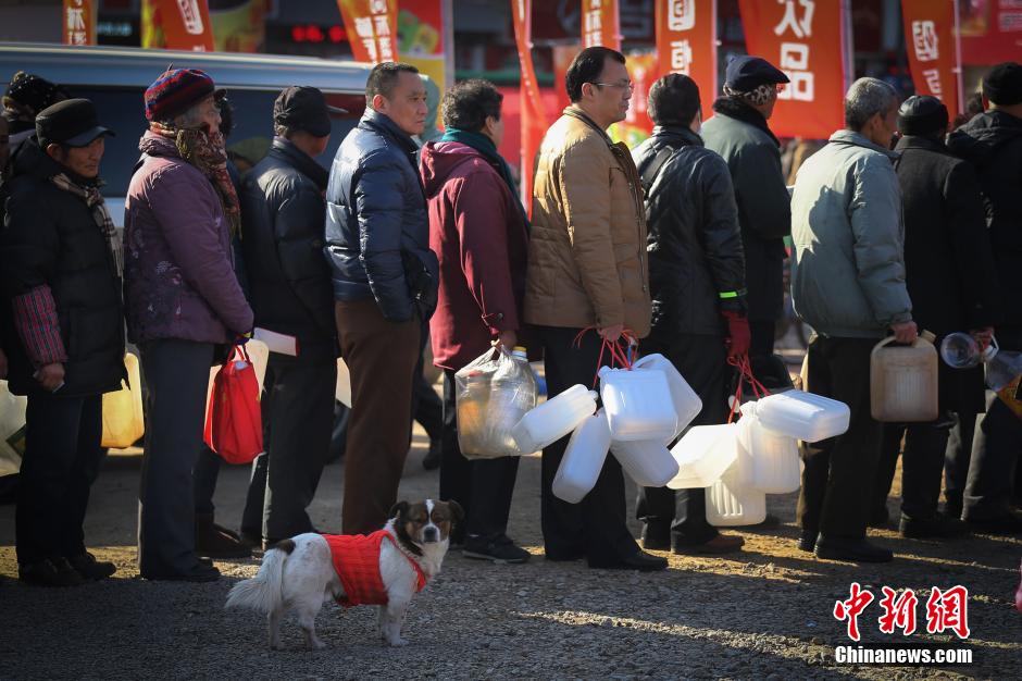 2月8日,江蘇鎮(zhèn)江一家百年老字號(hào)企業(yè)設(shè)立臨時(shí)供應(yīng)點(diǎn),為排隊(duì)前來(lái)的市民免費(fèi)“打醬油”。每年春節(jié)前排隊(duì)“打醬油”是當(dāng)?shù)孛癖娨呀?jīng)延續(xù)了20多年的習(xí)慣,打了醬油,春節(jié)就有了年味。據(jù)介紹,今年打醬油時(shí)間從2月8日至16日,預(yù)計(jì)將有上萬(wàn)人前往排隊(duì)“打醬油”。中新社發(fā) 泱波 攝