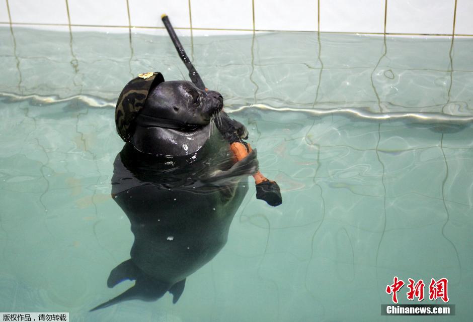 當?shù)貢r間5月9日,莫斯科紅場舉行盛大閱兵式慶祝衛(wèi)國戰(zhàn)爭勝利70周年。在俄羅斯的伊爾庫茨克水上公園里,海豹們也身著“軍裝”認真的在水中列隊接受訓(xùn)練員的檢閱。