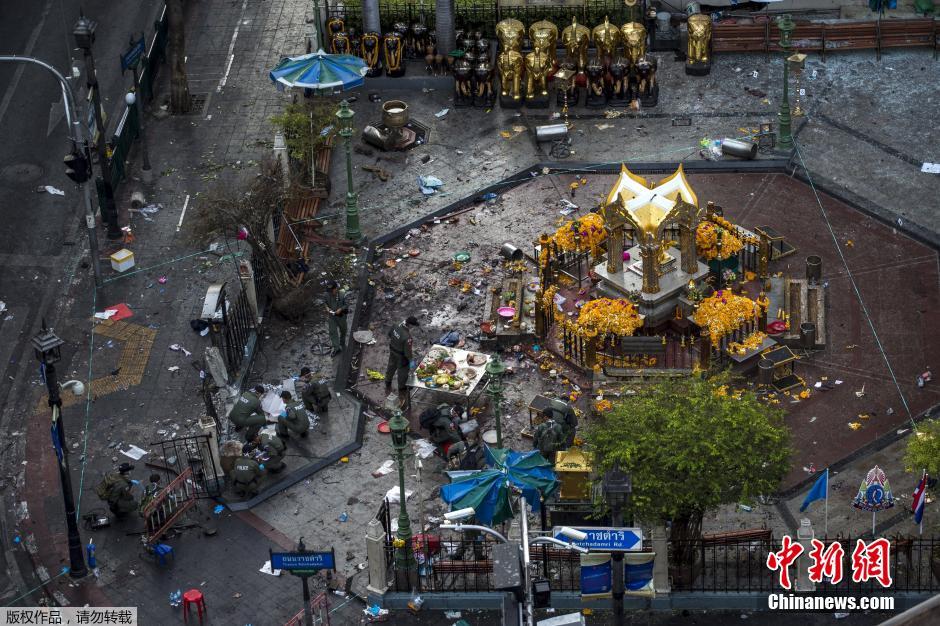 四面佛附近區(qū)域一片狼藉。泰國總理巴育稱,這起在宗教圣地發(fā)生的炸彈爆炸事件是泰國遭受的“有史以來最嚴重襲擊”。