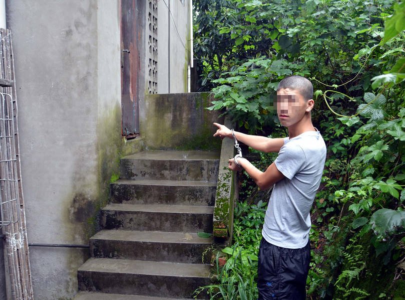 陳警官介紹,鄧和唐都是重慶市榮昌縣人,父母都在外地打工,因和家里有矛盾,唐某帶著1000元錢(qián)和鄧某回到了重慶,本來(lái)準(zhǔn)備找份工作,但1000元很快花完了,也沒(méi)有找到像樣的工作,于是就起了賊心。鄧某和唐某第一次偷盜的金額就有5100元,對(duì)他們來(lái)講已經(jīng)算是巨資,所以才想著拍照“留念”。圖為唐某指認(rèn)現(xiàn)場(chǎng)。