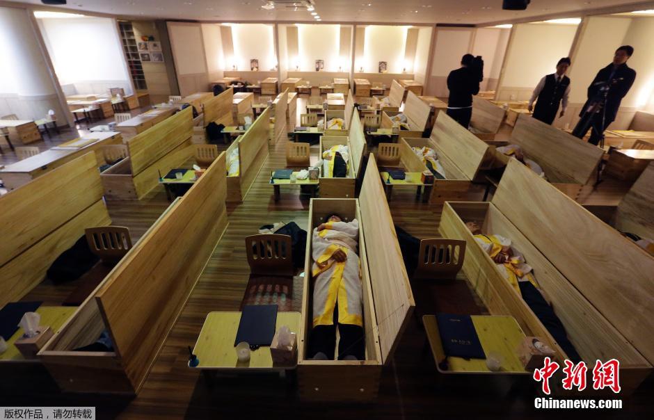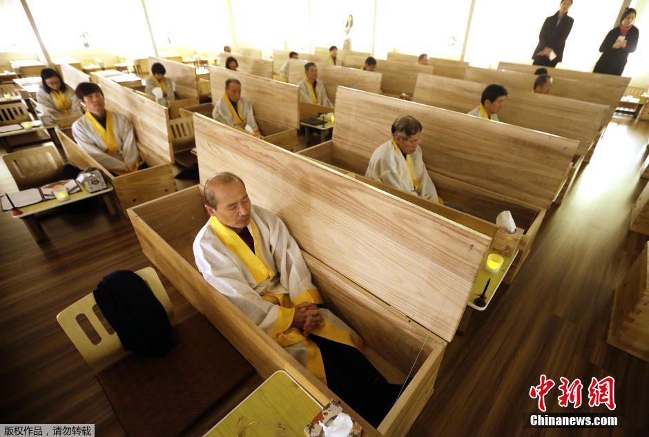 韓國(guó)社會(huì)近來(lái)興起一股“模擬葬禮”風(fēng)潮,以這種另類(lèi)的方式幫助人們減壓、調(diào)整人生航向。據(jù)報(bào)道稱,韓國(guó)的自殺率不斷上漲,每天都有多達(dá)40人自殺。專(zhuān)家認(rèn)為韓國(guó)過(guò)于激烈的競(jìng)爭(zhēng)環(huán)境是導(dǎo)致人們抑郁、自殺的罪魁禍?zhǔn)住J谞柕囊患抑委熤行姆Q,他們推出的“死亡體驗(yàn)”療法是消除自殺危機(jī)的良方。