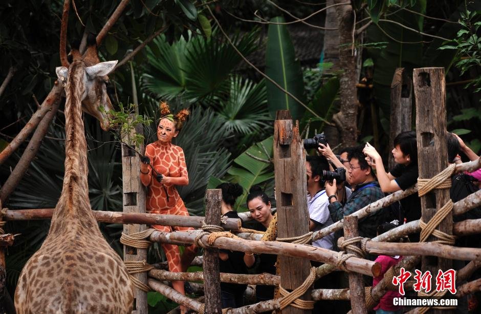 據(jù)悉,三亞彩色動物園舉辦此次美女人體彩繪活動,旨在傳播愛護(hù)動物、尊重生命以及人與動物和諧共處的理念,讓更多的人了解并參與到保護(hù)動物的隊伍中來。 陳超 攝