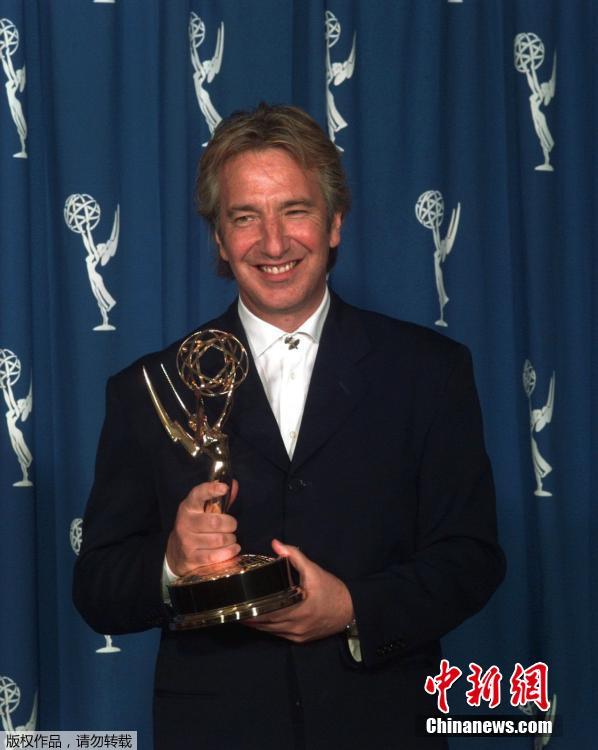 圖為1996年9月8日,阿倫·瑞克曼(Alan Rickman)贏得第48屆艾美獎最佳男主角。