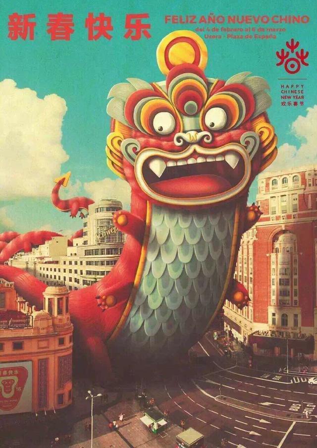2月6日上午,有網(wǎng)友發(fā)布圖片,稱系西班牙馬德里市祝賀中國新年的海報,這畫風你們自己感受下。