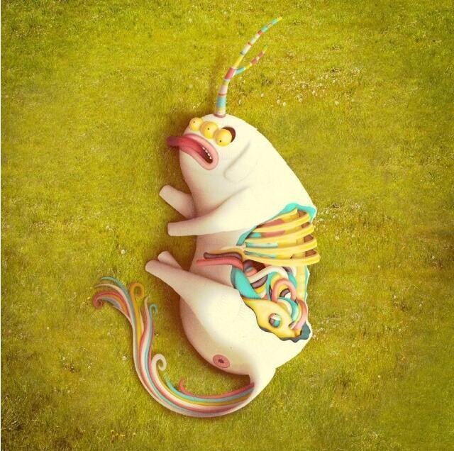 以下是創(chuàng)作“萌萌熊掌中國龍”的藝術(shù)家Juan Carlos Paz的“萌怪獸”系列作品,大家隨便感受下……