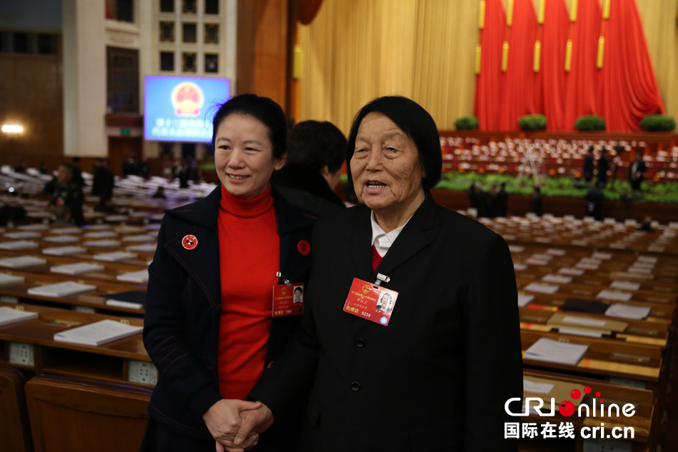女人大代表代表申紀(jì)蘭出席全國人代會(右) 攝影:鄧晨曦