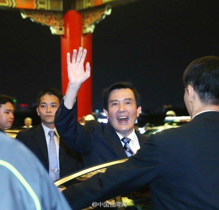 圓山飯店夜宴結(jié)束后,馬英九揮手對(duì)大家“再見”。
