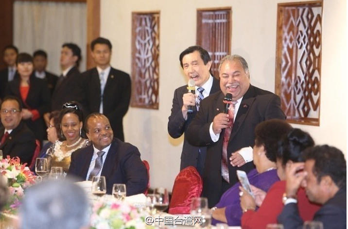 當(dāng)晚,馬英九在圓山酒店昆侖廳設(shè)宴款待外賓,席間一時(shí)興起,與瑙魯總統(tǒng)瓦卡合唱了一曲“Let it be me”。隨后開玩笑表示,先前外界問他卸任以后要作什么?自己都宣稱是機(jī)密不能透露,今天終于可以宣布,就是要和瓦卡總統(tǒng)合組一個(gè)樂團(tuán),臺(tái)下大笑鼓掌。