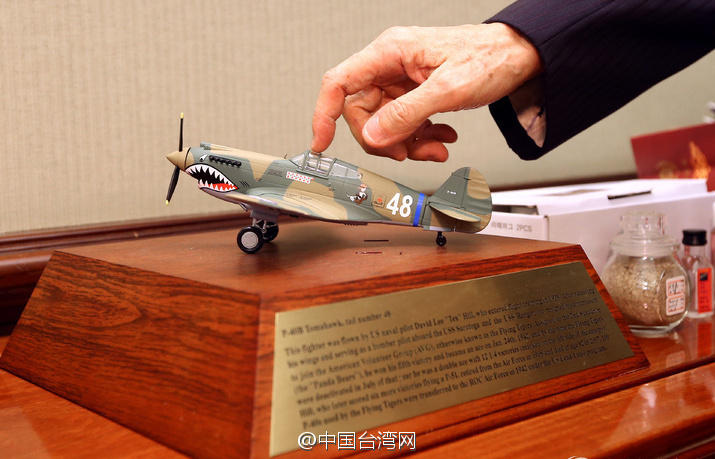 馬英九辦公室內(nèi)擺放著飛虎隊(duì)P-40B戰(zhàn)機(jī)模型。