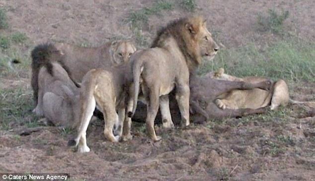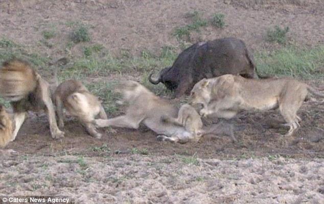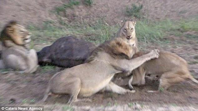 這次攻擊造成了一發(fā)不可收拾的局面,兩群獅子開始互毆決定誰(shuí)先吃掉可憐的水牛。