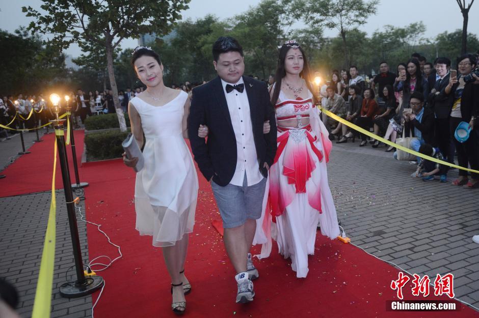 6月3日晚,山西大學美術學院畢業(yè)典禮,大學畢業(yè)生通過紅地毯走進會場,學弟學妹們夾道歡迎。當畢業(yè)生情侶一起走秀時,引起學弟學妹們一陣尖叫。韋亮 攝