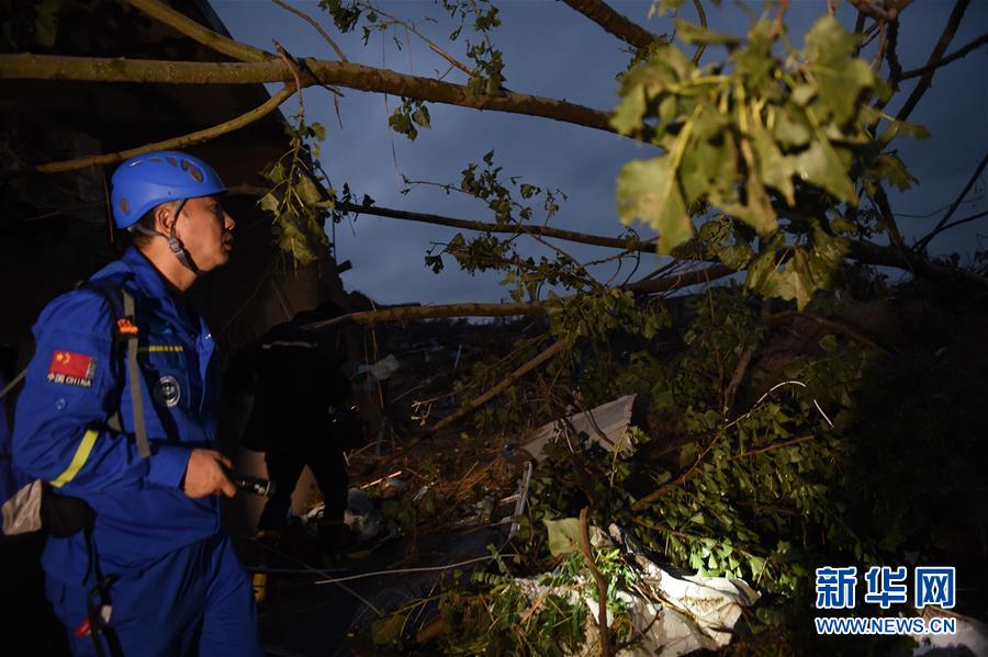 6月24日黎明,搜救人員在鹽城市阜寧經(jīng)濟開發(fā)區(qū)北陳村進行排查搜救。新華社記者李響攝