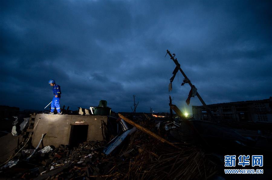 黎明時分,搜救人員繼續(xù)在江蘇省鹽城市阜寧縣受災(zāi)地區(qū)對廠房、民居等展開全面排查搜尋,營救受災(zāi)群眾。23日下午,江蘇省鹽城市阜寧縣、射陽縣部分地區(qū)突發(fā)龍卷風(fēng)冰雹嚴重災(zāi)害,多個鄉(xiāng)鎮(zhèn)受災(zāi),造成大量民房、廠房、學(xué)校教室倒塌,部分道路交通受阻。據(jù)初步統(tǒng)計,已造成78人死亡,約500人受傷。