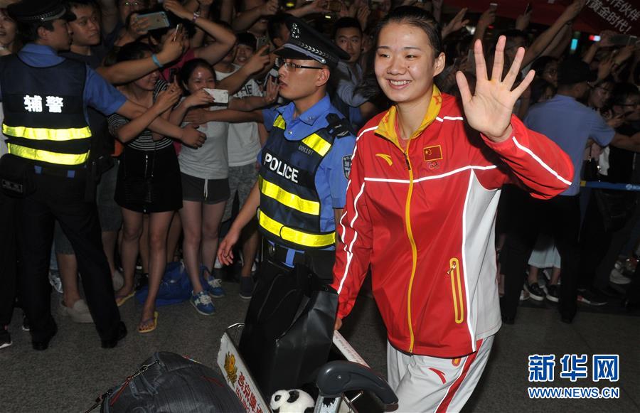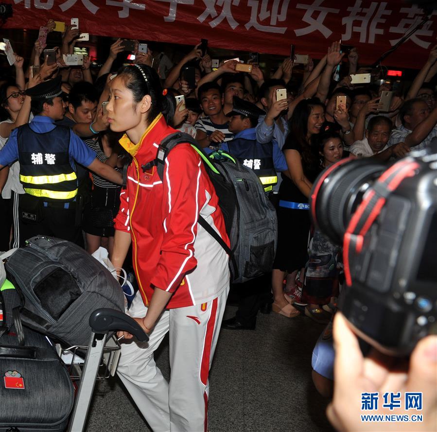 8月23日,中國女排隊員徐云麗抵達北京首都國際機場。當晚,在里約奧運會獲得金牌的中國女排回國。 新華社記者陳曉偉攝
