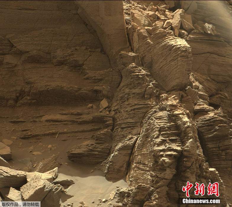 根據(jù)無人探測器“好奇號”在火星“莫瑞孤峰群(Murray Buttes)拍攝的新影像,除了遠(yuǎn)方的群山,當(dāng)?shù)剡€有丘陵、臺地,及巖壁,地貌與美國西南部的沙漠有些相似。