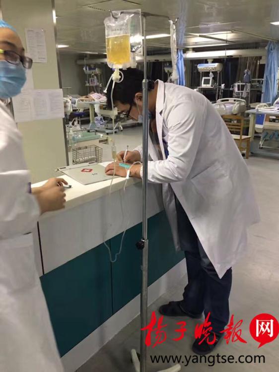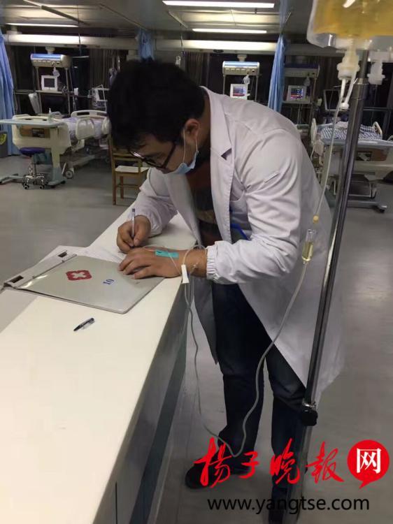 10月29日,一位身穿白大褂帶著口罩的男醫(yī)生,一邊打點(diǎn)滴,一邊為病人下醫(yī)囑的照片,出現(xiàn)在記者的微信朋友圈中。記者獲悉,這位醫(yī)生是江蘇鹽城市濱海縣人民醫(yī)院的一名醫(yī)師,當(dāng)時(shí)正在搶救病人,現(xiàn)場非常感人。圖片來源:揚(yáng)子晚報(bào)網(wǎng)