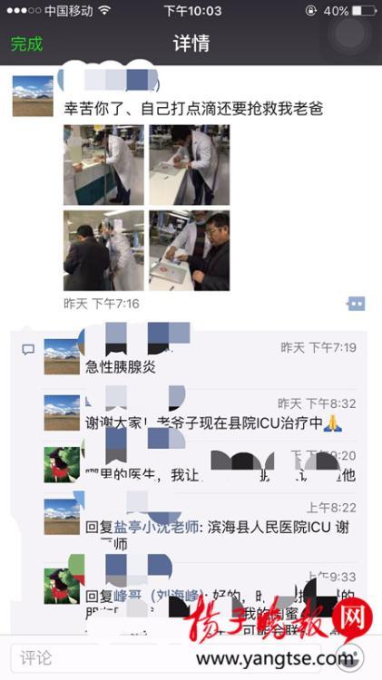 記者聯(lián)系上微信好友劉海峰,他告訴記者,昨天晚7點(diǎn)左右,他老爸重因病去濱??h人民醫(yī)院搶救,進(jìn)入重癥病房后,跟著一名護(hù)士去喊醫(yī)生,看到一名男醫(yī)生坐在辦公室的看病歷?!拔液唵握f了一下爸爸的病情,他立刻推著掛著點(diǎn)滴的架子跑了出來?!眻D片來源:揚(yáng)子晚報(bào)網(wǎng)
