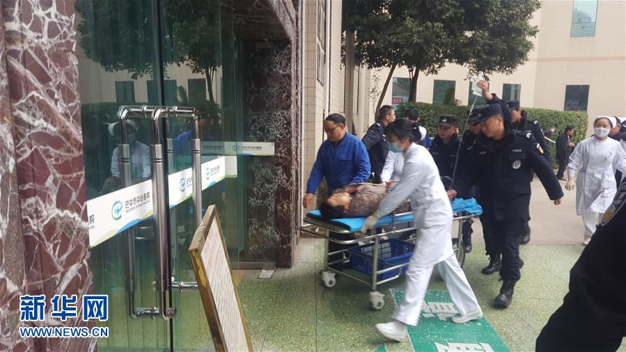 12月18日,醫(yī)護人員將一名疑似中毒人員轉(zhuǎn)運至四川省巴中市中心醫(yī)院(手機拍攝)。記者18日從四川省巴中市委宣傳部獲悉,當(dāng)日巴州區(qū)金碑鄉(xiāng)發(fā)生一起涉及30名群眾的疑似食物中毒事件。目前,已造成2人死亡,3人病情較重。新華社發(fā)(新浪微博網(wǎng)友@巴中那些事 提供)