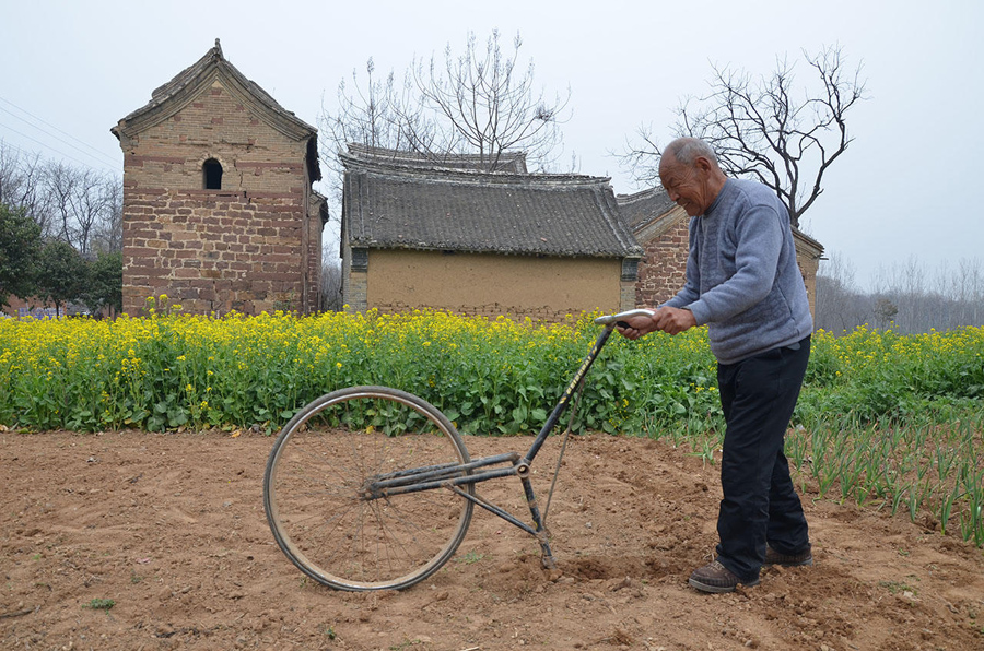 陽春三月,農(nóng)村開始了一年的春耕,莊稼人不會在乎地里的風景有多美,他們在乎的是地里的草多不多,手里的工具是否順手。這位河南郟縣農(nóng)村大叔正在推的這個玩意兒,誰能給它起個名字?