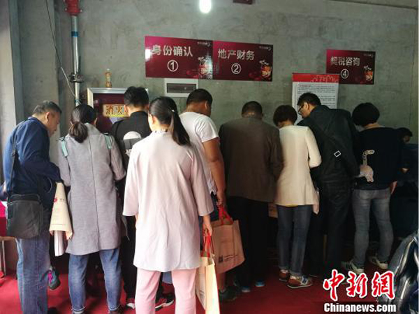 業(yè)主辦理房屋交接手續(xù)。西安市民李先生告訴記者,自己之前在華清學府城購買了房子,今天來辦理房屋交接手續(xù),從校門口直接進來,路程近,也很方便。