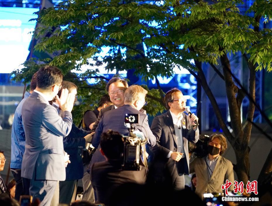 當(dāng)?shù)貢r(shí)間5月9日深夜,韓國(guó)第19屆總統(tǒng)選舉共同民主黨候選人文在寅及其競(jìng)選團(tuán)隊(duì)現(xiàn)身首爾光化門(mén)廣場(chǎng),發(fā)表“勝選演說(shuō)”,與支持民眾握手慶祝。據(jù)出口民調(diào)顯示,文在寅在當(dāng)日進(jìn)行的大選投票中以41.4%的支持率絕對(duì)優(yōu)勢(shì)勝選。在選舉管理委員會(huì)公布的大部分開(kāi)票結(jié)果中,文在寅得票率也遙遙領(lǐng)先,提前鎖定勝局。