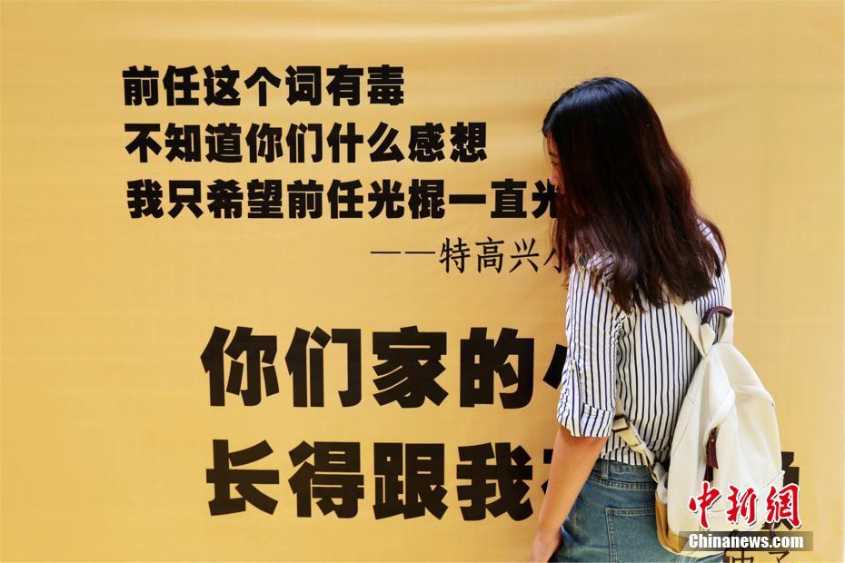 5月18日,在浙江寧波某商場(chǎng)內(nèi),近百條“致前任”留言貼滿了墻壁和地面,引發(fā)不少市民駐留圍觀。據(jù)工作人員介紹,這些句子來(lái)自網(wǎng)絡(luò)征集,最終篩選了99名網(wǎng)友留言,希望在“520”這一網(wǎng)絡(luò)情人節(jié)中,引發(fā)人們對(duì)愛的共鳴。尤勤勇 攝