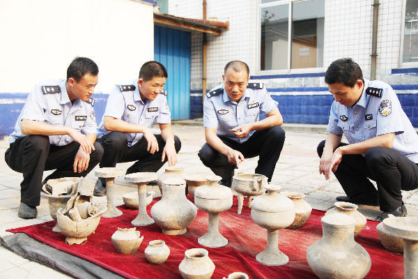 經(jīng)縝密偵查,城郊派出所會(huì)同刑警二中隊(duì)將馬某抓獲,并從馬某家中搜出大量文物。隨后,民警對(duì)查獲的文物進(jìn)行了清點(diǎn),竟然達(dá)25件,而且全是國(guó)寶級(jí)文物!