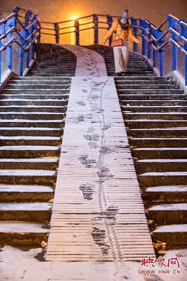 雪中攙扶下天橋