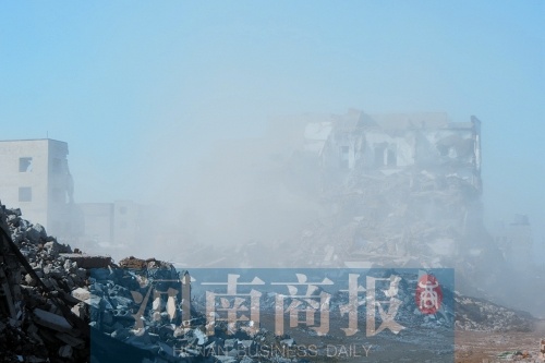 河南商報記者隨后趕到現(xiàn)場,站在建設路與西三環(huán)向南路口,離拆遷現(xiàn)場還有300多米,就已經看到灰色揚塵升騰起數十米。