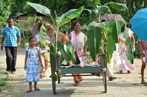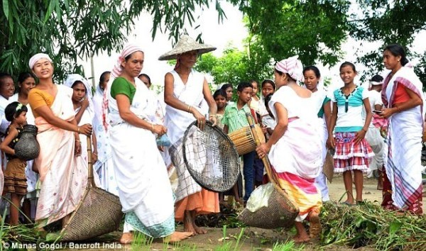 在婚禮上,主持婚禮的圣徒吟誦傳統(tǒng)的祈禱詞,婚禮結束后,青蛙會被帶到附近的小池塘放生。村民則繼續(xù)用餐,有超過900盤食物被供應。參加儀式的村民Gogoi說:“我們放生青蛙,這樣它們可以過它們自己的生活,同時向雨神傳達我們的信息。舉行這樣的儀式是不得已的措施,我們感謝上帝能夠讓我們的愿望成真。”