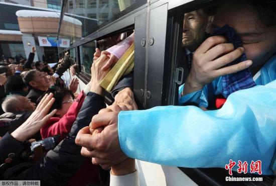 資料圖:圖為當(dāng)?shù)貢r(shí)間2014年2月25日,韓朝離散家屬第二輪會(huì)面活動(dòng)結(jié)束,親屬間揮淚話別。