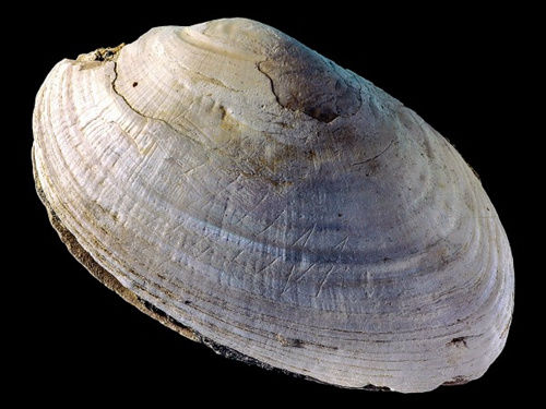 這個距今約50萬年歷史的貝殼化石上,出現(xiàn)了人工雕刻的痕跡