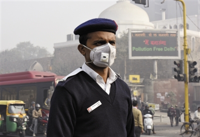 印度媒體公布的空氣質(zhì)量顯示,新德里去年年底PM2.5濃度突破200微克/立方米,屬于嚴(yán)重污染級(jí)別。但由于遭遇極端天氣,今年實(shí)行汽車單雙號(hào)限行后,新德里PM2.5濃度部分時(shí)間還是突破400微克/立方米。