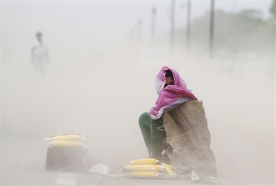 2015年5月20日,印度新德里,當(dāng)?shù)卦庥鰢?yán)重沙塵暴天氣,空氣污染嚴(yán)重。