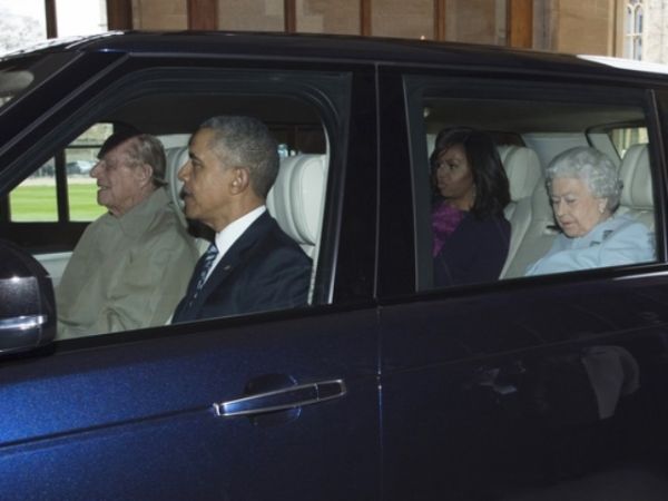 美國總統(tǒng)奧巴馬與妻子米歇爾22日到訪英國溫莎城堡,英國女王伊麗莎白二世與丈夫菲利普親王乘車迎接。只是,這次的司機(jī)是94歲的菲利普親王。奧巴馬坐上路虎汽車的副駕駛座,伊麗莎白二世和米歇爾坐在后排座位。奧巴馬晚些時(shí)候告訴記者:“我還從來沒有坐過親王開的車。我得說,車開得很平穩(wěn)?!?/p>