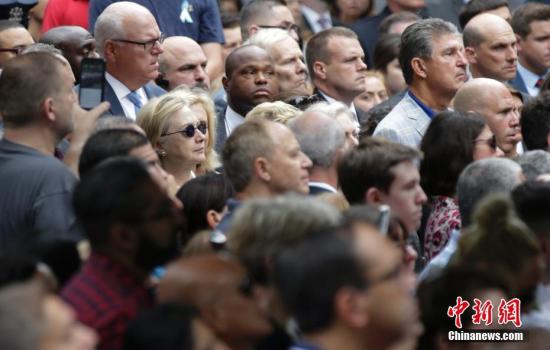 資料圖:當(dāng)?shù)貢r(shí)間9月11日,“911”15周年紀(jì)念活動在美國紐約911紀(jì)念公園舉行,圖為美國民主黨總統(tǒng)候選人希拉里出席當(dāng)天的紀(jì)念活動。 中新社記者 廖攀 攝