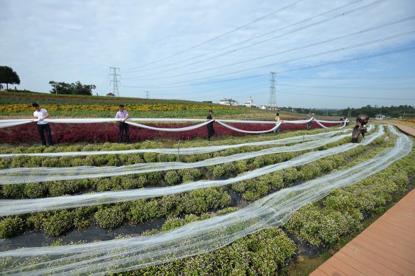 9月24日,為了迎接國慶大假,工作人員在成都一景點(diǎn)內(nèi)擺放一款4100米長的婚紗,該婚紗的拖尾用單層網(wǎng)紗制作而成,寬度1.5米,耗時(shí)一個(gè)月,大約花費(fèi)4萬元。成都商報(bào)/東方IC