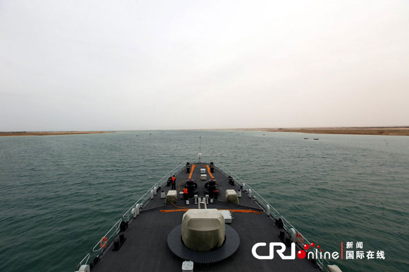 國際在線報道(記者王智達、曹金平):當(dāng)?shù)貢r間27日清晨6時(北京時間中午12時),執(zhí)行“和諧使命——鄭和艦環(huán)球行”任務(wù)的中國海軍遠洋航海訓(xùn)練艦“鄭和”艦,在埃方引水員引導(dǎo)下,緩緩駛?cè)胧澜缏劽奶K伊士運河。圖為鄭和艦駛?cè)胩K伊士運河 王智達攝