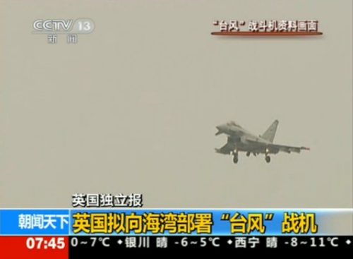 報道指出,英國考慮部署戰(zhàn)機的時機是,以色列威脅要對伊朗發(fā)動軍事打擊,中東大部分地區(qū)處于“阿拉伯之春”以及敘沖突余波所帶來的動蕩中。在這一動蕩時期是否向海灣部署戰(zhàn)機,這將由英國首相卡梅倫在同迪拜和阿聯(lián)酋深入交談后做出決定。預計在不久的將來將宣布相關決定。