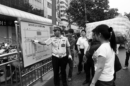 大河報(bào)訊 很多外地來(lái)鄭人員在火車站下車后經(jīng)常向民警問(wèn)路,昨日,鄭州交巡警三大隊(duì)聯(lián)合市公交總公司在火車站南、北出站口分別設(shè)置一塊公交線路示意圖(如圖),方便乘客按照?qǐng)D示選擇線路。