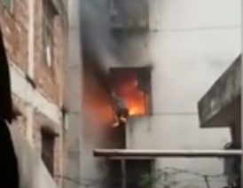 男子被困火海路人淡定拍攝