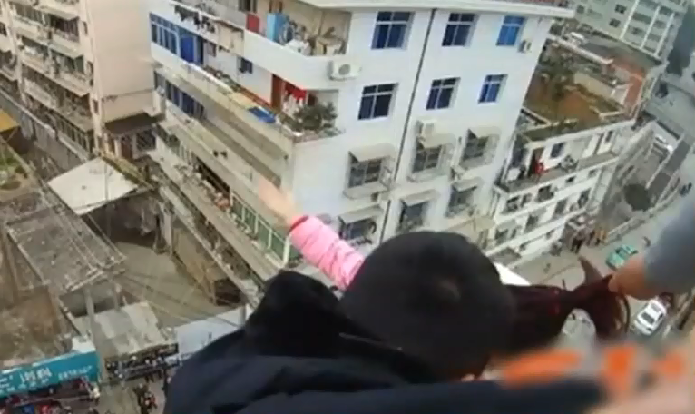 實拍:男子抓住跳樓妻子頭發(fā)