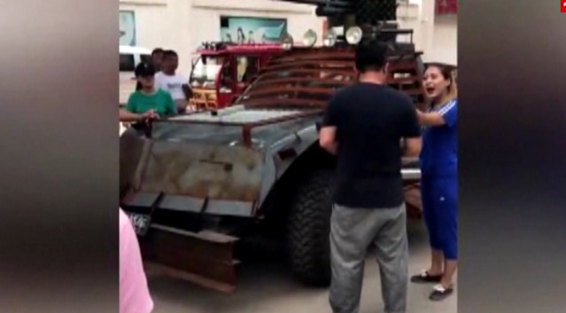 戰(zhàn)車被刮 悍妻罰夫跪地道歉