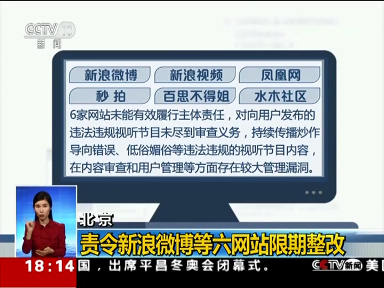 責(zé)令新浪微博等六網(wǎng)站限期整改