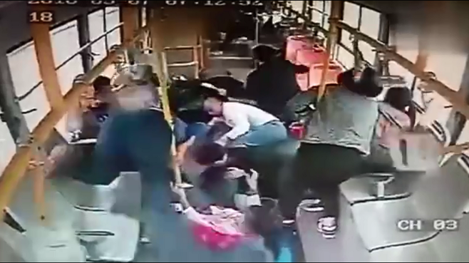 公交車未按定規(guī)??勘蛔肺?車內(nèi)乘客瞬間“亂飛”