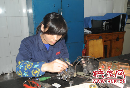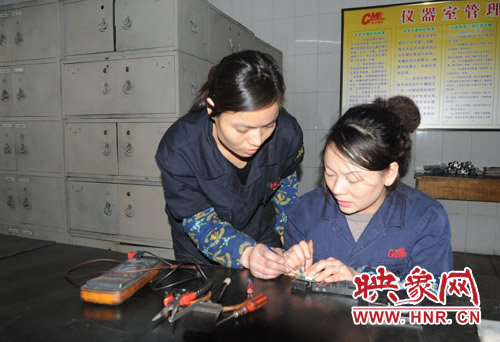 春娜的師傅是個(gè)有著20多年維修經(jīng)驗(yàn)的老工人,他說:“瓦斯檢測儀就是礦山安全的晴雨表,我們每修好一臺(tái)儀器,礦山的安全就多一份保證。”自此,春娜開始苦心學(xué)習(xí),從便攜儀器上一個(gè)電容、電阻,到一個(gè)集成塊,一個(gè)催化元件,從不認(rèn)識(shí)到認(rèn)識(shí),從認(rèn)識(shí)到熟悉,從熟悉到熟練掌握,春娜付出了比別人更多的辛酸和汗水,師傅喜歡她敢啃硬骨頭的韌勁,把20多年總結(jié)的工作經(jīng)驗(yàn)毫無保留地傳授給她。三個(gè)月后,春娜第一次參加隊(duì)里組織的儀修工技術(shù)大比武,她便以理論、實(shí)踐雙第一的成績成為隊(duì)里最優(yōu)秀的新生力量?!耙床桓?要干就干得最好”春娜下定決心要做隊(duì)里最優(yōu)秀的儀修工,甚至還有野心要超過師傅。上班幾年來,她每天重復(fù)著一樣的工作,拆儀器、擦煤灰、檢修、維修、校驗(yàn),每一個(gè)動(dòng)作都輕柔靈巧,嫻熟干練,她說:“每修好一臺(tái)儀器,心里都特別有成就感,對(duì)它們就像對(duì)自己的孩子,從心往外喜歡。”