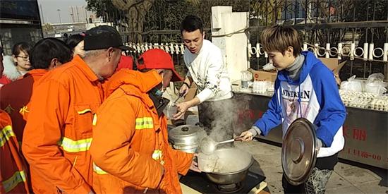 另一邊,在鄭州市花園路廣電南路交叉口,主持人劉雯和韓佳帶著十幾名義工早早的在路邊就開始忙活了。他們要給附近50多名環(huán)衛(wèi)工人煮餃子。平時,環(huán)衛(wèi)工們的午飯都很簡單,甚至都是隨便對付的,這次,主持人和義工們特意選在離工人們中午休息比較近的地方,搭起了臨時的灶臺,給工人們做上一頓熱騰騰的餃子。由于條件簡陋,臨時灶臺上的火十分不穩(wěn)定,劉雯和韓佳脫下厚重的外套,擼起袖子親自生火,費(fèi)了好大勁終于把餃子下鍋了。吃上熱騰騰的餃子,環(huán)衛(wèi)工人們特別開心。一位老大爺由衷的感嘆道:“好久沒吃過這么暖心的午飯了,謝謝你們?!?/p>