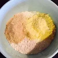 1. 準(zhǔn)備好三種面粉,比例基本是4:1:1,當(dāng)然只有白面粉也可以,或者可以隨意加入其他面粉。