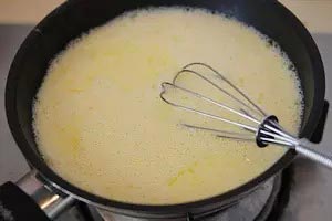 2、把小鍋小火加熱并不斷攪拌,直到鍋里的液體開始要沸騰為止,離火。